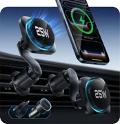 ESR OmniLock Qi2.2 je napreden avtomobilski nosilec MagSafe s 25W hitrim polnjenjem, zasnovan za največje udobje in varnost med vožnjo. Uradno certificiran brezžični polnilnik Qi2.2 s tehnologijo CryoBoost zagotavlja stabilno, hitro in varno polnjenje naprav, združljivih s sistemom MagSafe, hkrati pa aktivno hladi telefon, da ohranja največjo zmogljivost.