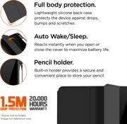 Zaščita celotnega telesaLahka silikonska zadnja stran varuje napravo pred padci, udarci in praskami.Preizkušeno pri padcuOhišje Storm 250m Stylus Case je bilo zasnovano in preizkušeno tako, da zdrži padce z višine 1,5 m, dvignjeni robovi ohišja pa pomagajo zaščititi vaš zaslon.Samodejno