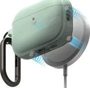 Vključena je funkcionalna kaveljček, ki omogoča, da pokrovček obesite kamor koli, na primer na pas hlač, nahrbtnik ali torbico, in tako zaščitite slušalke pred izgubo. Ovitek je združljiv z dodatki s tehnologijo MagSafe, tako da omogoča uporabo magnetnih polnilnikov, držal in drugih dodatkov MagSafe.