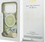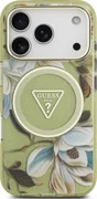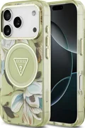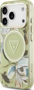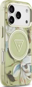 Guess IML Glitter Flowers Triangle MagSafe ovitek za iPhone 17 Pro zelen (GUHMP17LHFLPEDN)