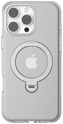 Tanko titansko-sivo ohišje za iPhone 16 Pro z vrtljivim obročem/stojalom — varen oprijem, dvignjeni robovi za kamero in zaslon, združljivo z brezžičnim polnjenjem.